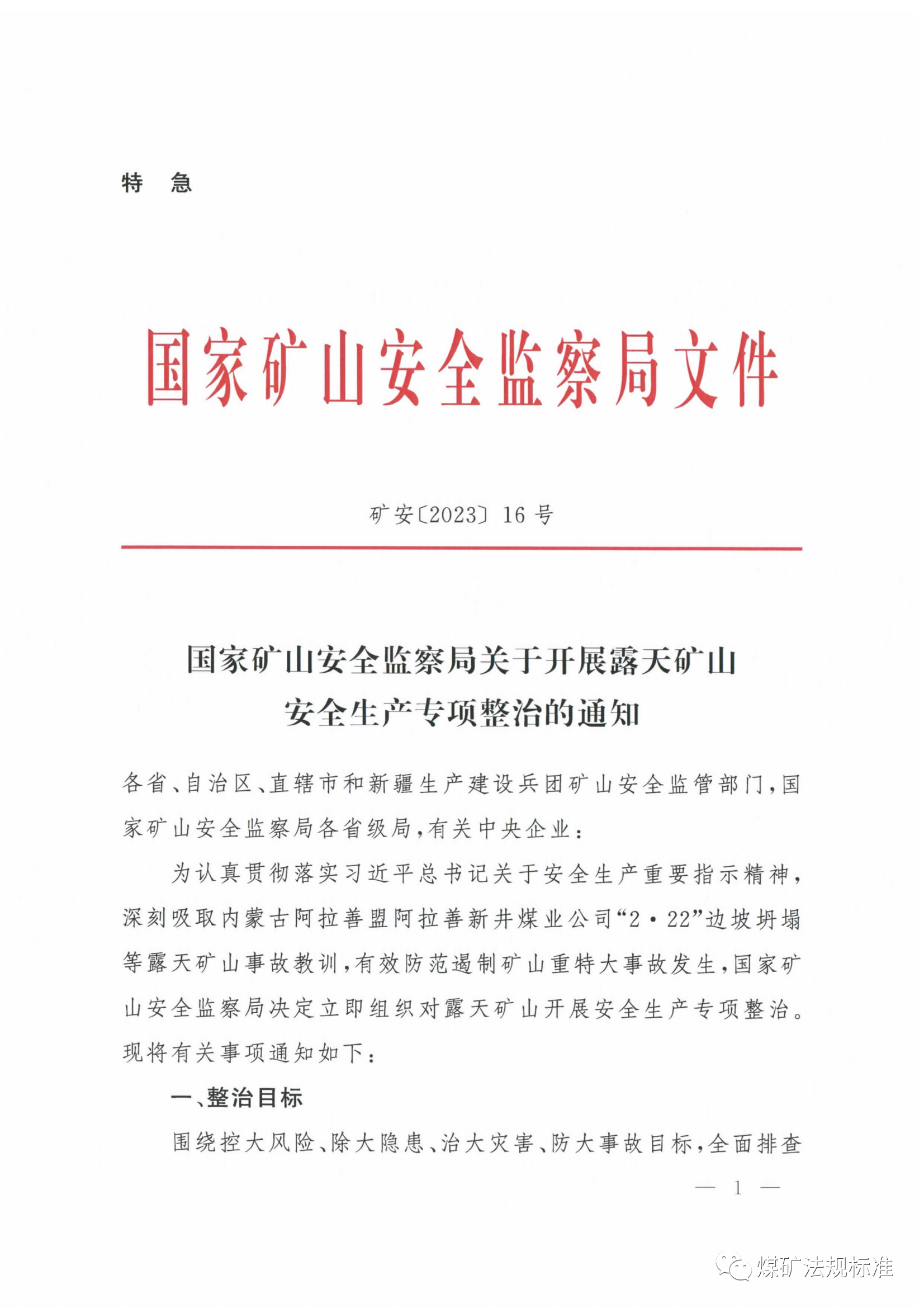國家礦山安全監(jiān)察局關(guān)于開展露天礦山安全生產(chǎn)專項整治的通知